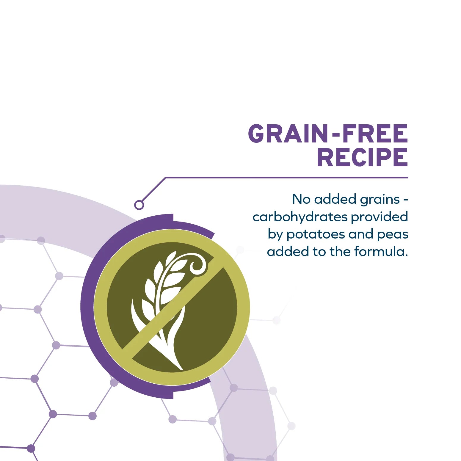 - Grain-free: No added grains - Carbohydrates are provided by potatoes and peas added to the formula